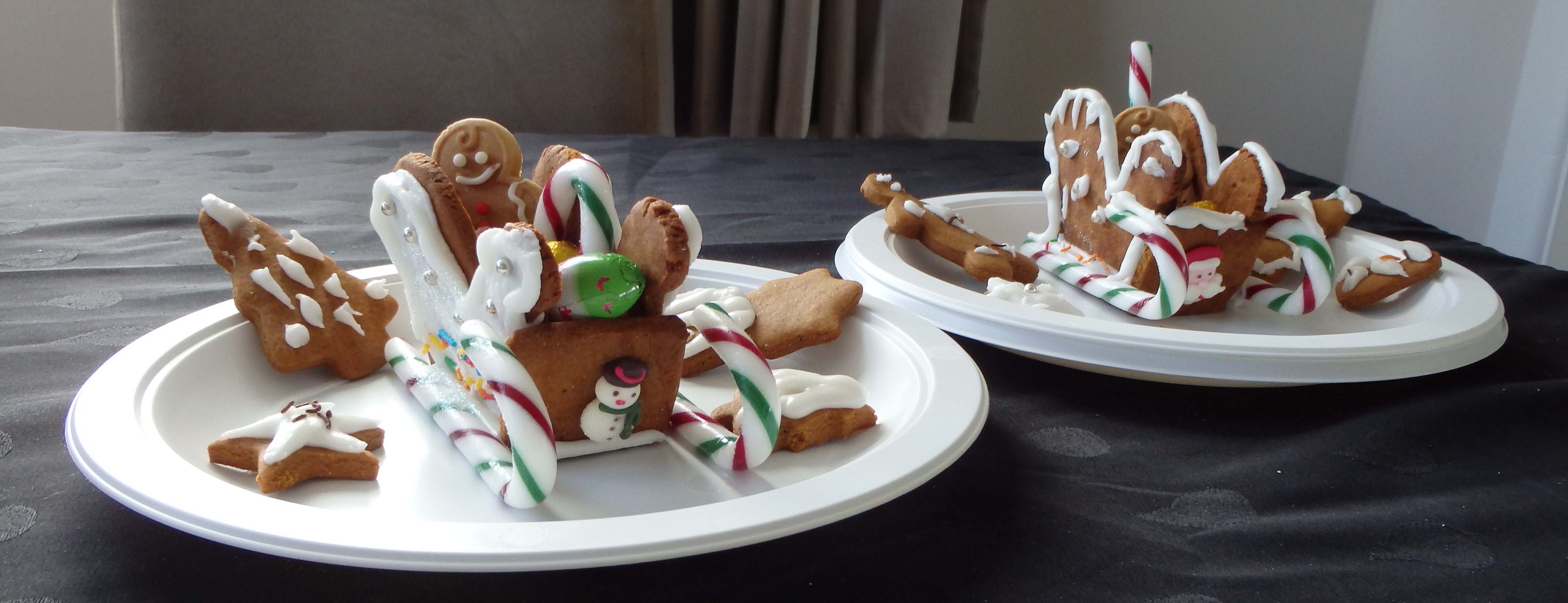 Pour s’échauffer, et puis aussi, pour ma part, pour découvrir comment marchent les constructions en pain d’épice, j’ai pour mission de préparer de quoi faire 10 à 24 traineaux en pain d’épice et d’en finaliser 2 pour inspirer les enfants de l’hôpital d’à côté qui monteront tous les traineaux suivants.
