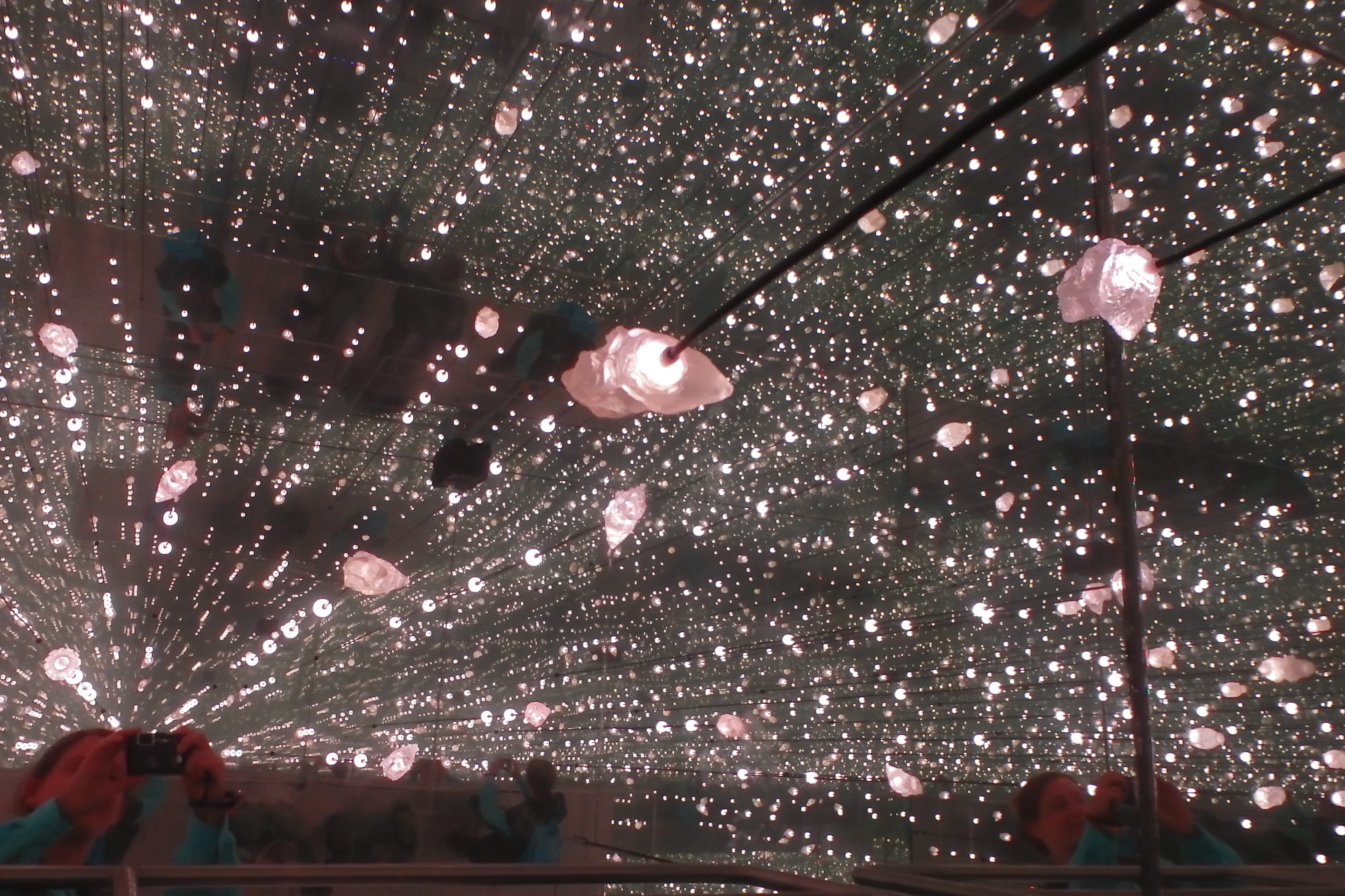 Eh bien, c’est une simple pièce de 10m carrés maximum, couverte de miroirs. Sauf pour la petite coursive qui permet de se donner un repère géographique et de ne pas perdre pieds dans l’infini.