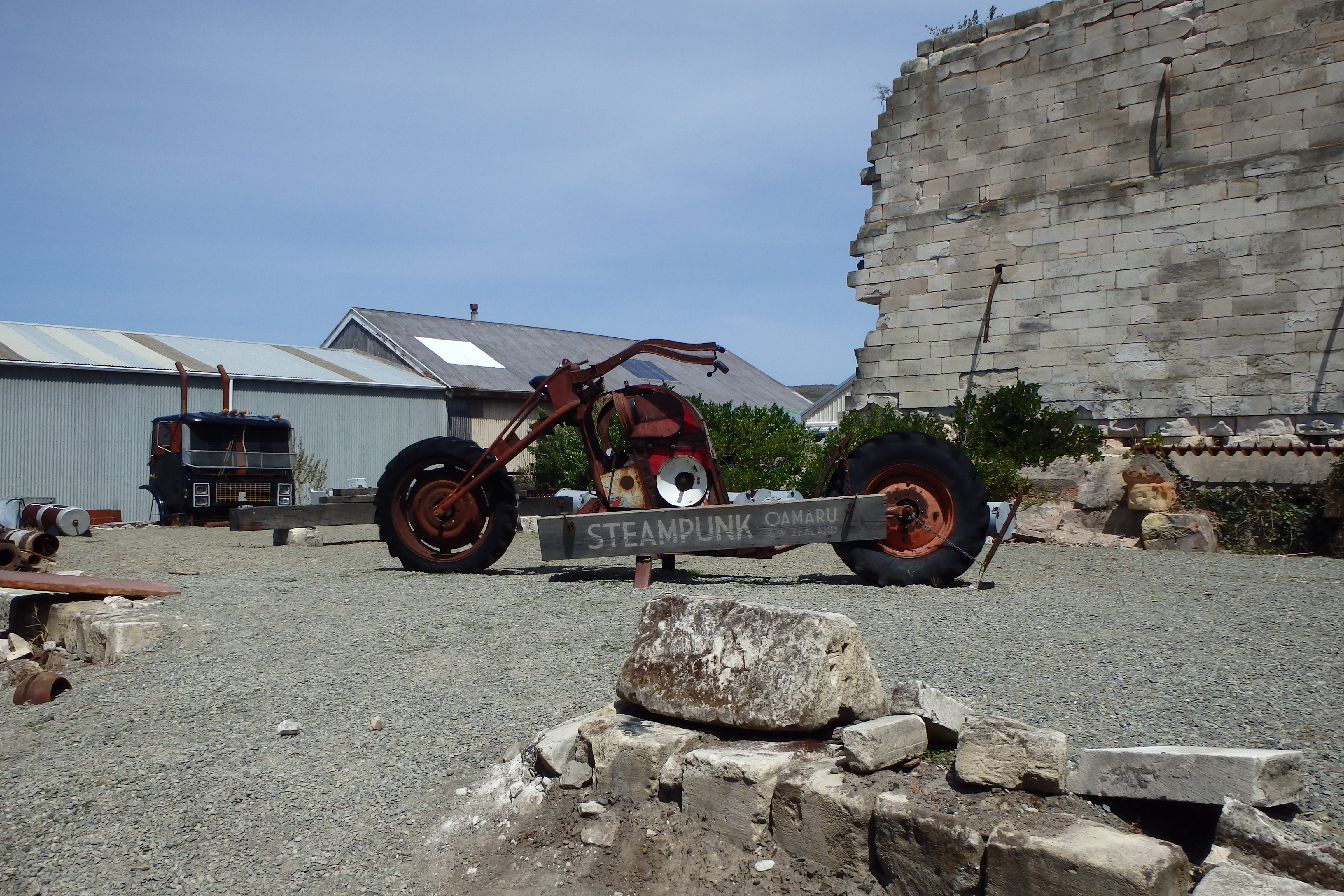 Le courant artistique steampunk s’inspire du style de science-fiction issues du début du 19ème siècle telles que les histoires de Jules Verne. En milieu anglais, ce courant artistique s’inscrit dans le cadre de l’Angleterre victorienne. Or il se trouve que la petite ville d’Oamaru, en plus d’être réputée pour ses petits pingouins bleus, est réputée pour son architecture victorienne. Du coup, quand ils se sont motivés pour réhabiliter les terrains vagues et anciennes usines du port, ils ont décidé de le faire en mode steampunk.