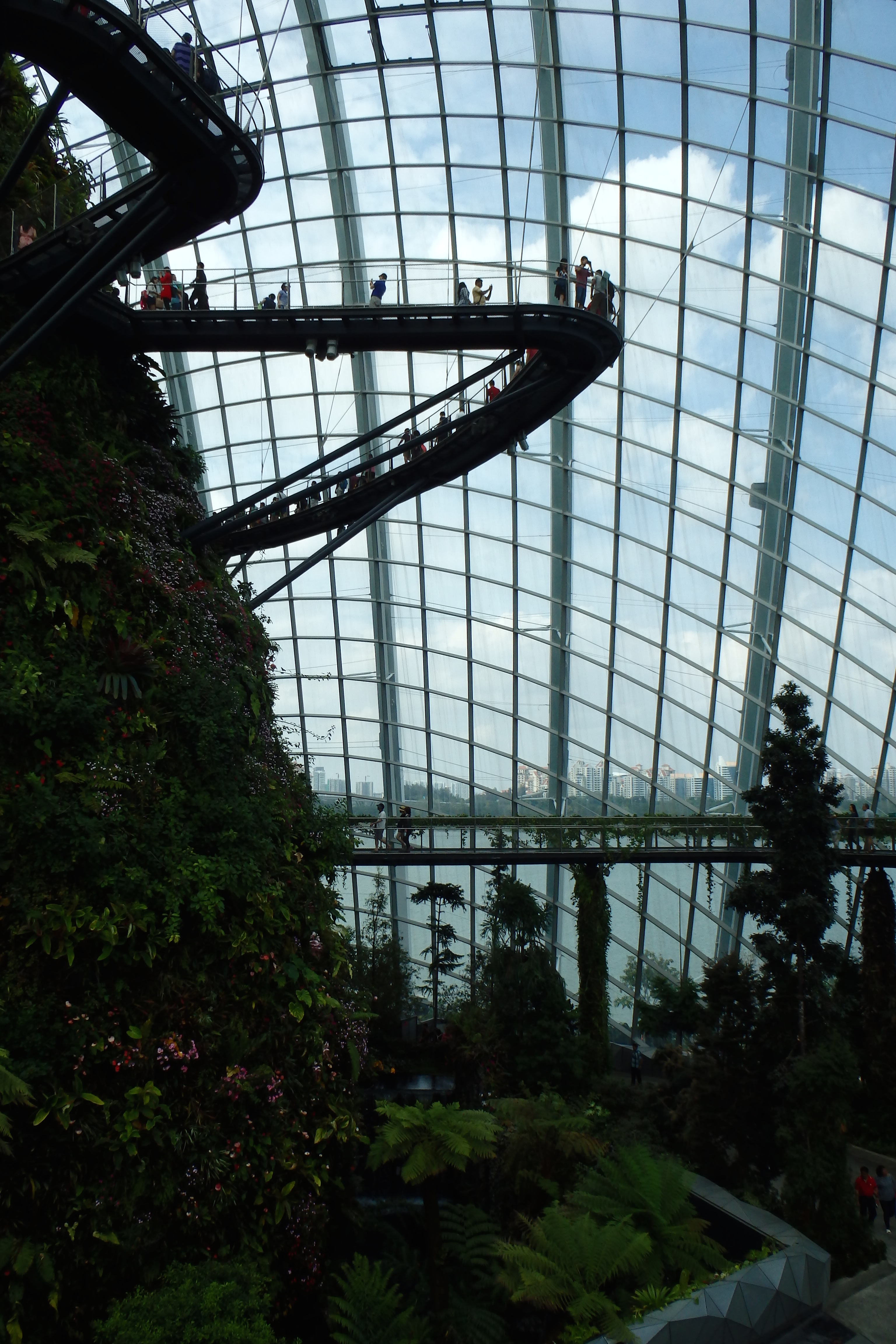 Though, those conservatories can feel a like a 3.0 web experience : you enter huge glass bubbles where a whole natural area has been recreated. You get the strange feeling you have just entered a dark science fiction story where the outside air is so badly polluted humans had to recreate full size natural areas so they can remember what waterfalls and flowers looked like.