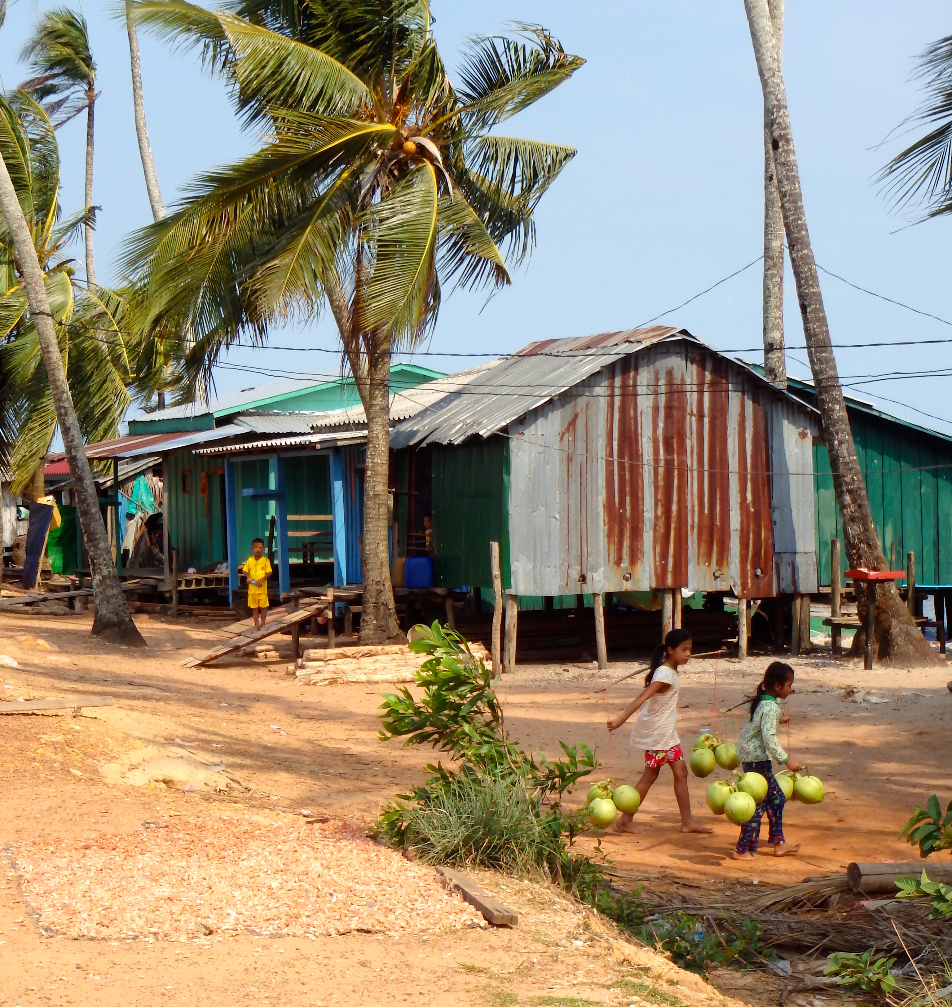 – Shrimps are put to dry on the side of the road almost every where in town and kids help their parents in day to day life like bringing back the coconuts. When you know the weight of a full coconut, you respect them all the more.