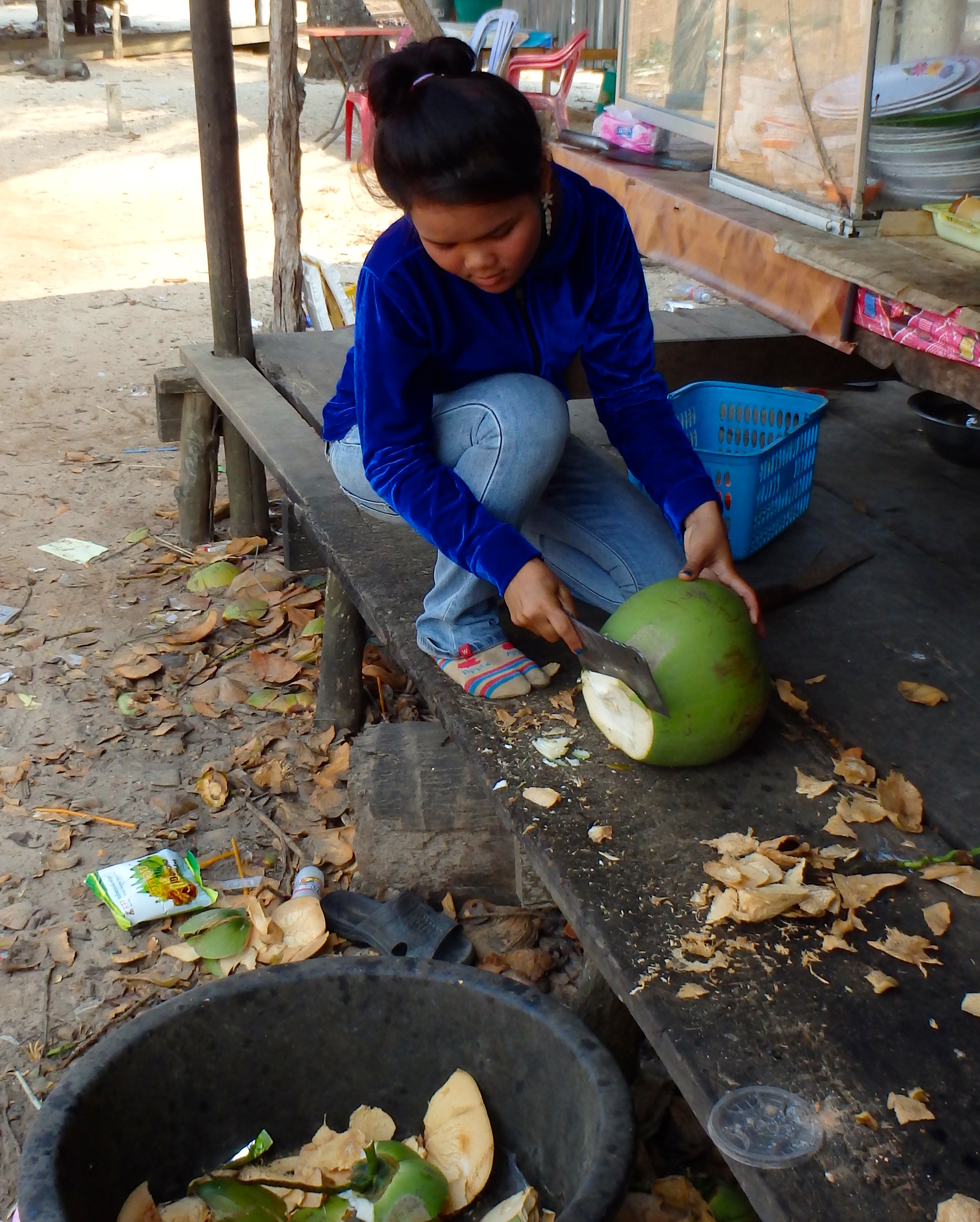 – Here, everyone knows how to use a machete to prepare a perfect coconut. I have tried and it’s not so easy, you have to learn the technic !