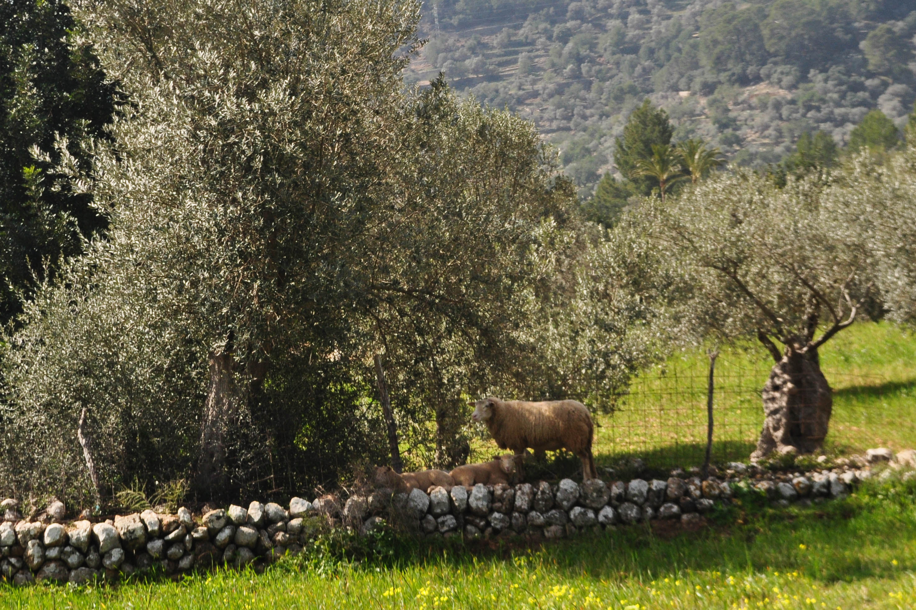 - Sheep taking a nap under an olive tree
