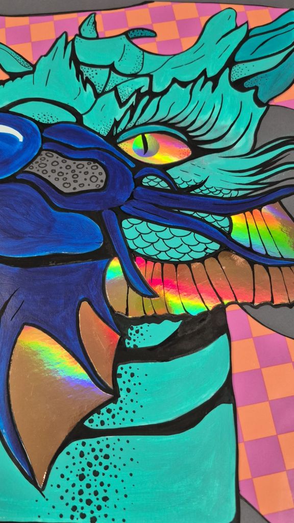 Et pour commencer 2026, je vous présente la belle Long Ma, dragonne machine de Shanghai, revisitée en style pop.